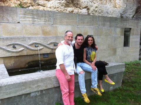 We asked the lady serving us what was the meaning behind the l’anguille on the fountain she said she didn’t know, she then thanked us and added “I have been working here for years and never even noticed them!” On the table next to us a lady and her daughter overheard our conversation, she turned to us and said she heard of a story that they were the symbol of the god Mercurio, ( as well as the fact that Italians eat everything) we looked at the water gushing forth from the mountain and as is common in Italy, water has since ancient times been associated with the Gods. After lunch Franco took us to a stone masons workshop to show us one of Denver’s CNC machines in action. Franco introduced us to four artigianni “uomini della pietra” people who for me are like brothers, Cinzia got talking to one of the men who was operating the CNC machine and learnt that he studied under the same master that she did when she studied mosaics in Ravenna, their teacher was a person famous for restoring mosaics of Ravenna. She asked him about the fountain with the eels and it turned out it was his father that carved the eels on the fountain that we were fascinated by!