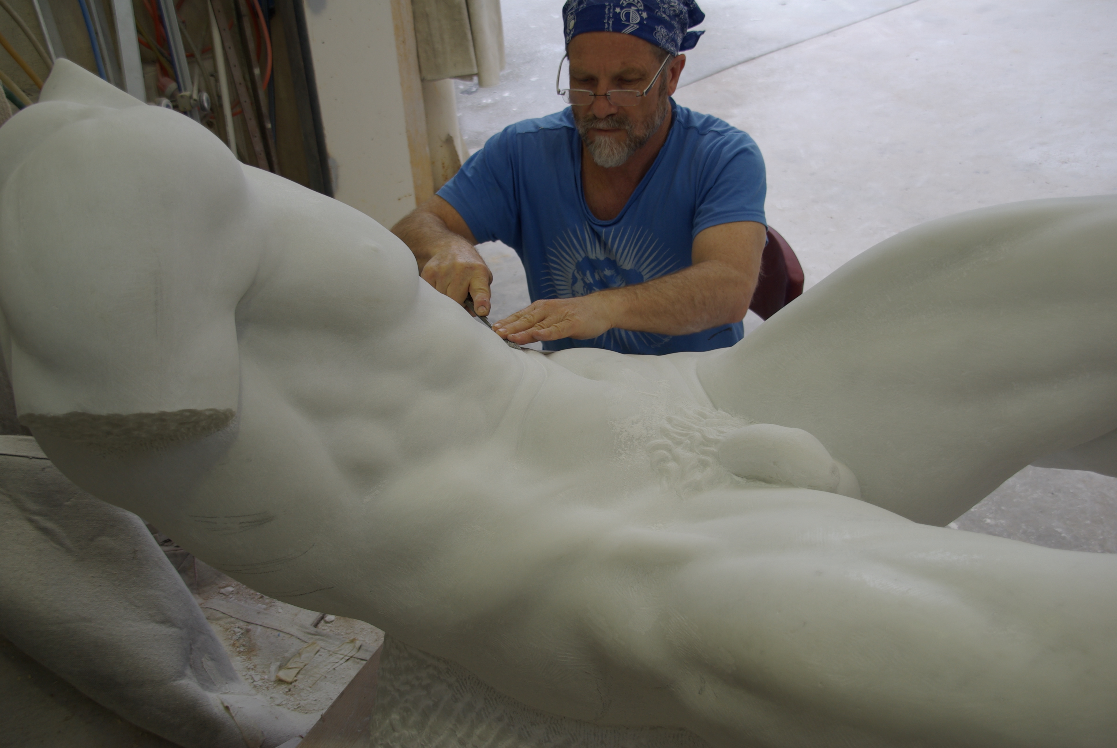 I am almost finished carving this work “River God”. I am working on five marble sculptures for my one man show coming up March 2014 at Mossgreen Gallery. I’ll have several sculptures in bronze as well. Today went to see the new Mossgreen Space, its going to be a fantastic venue.