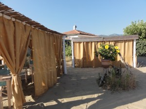 Cinzia and I spent several afternoon’s at the Bagni in Marina di Pietrasanta. The beach experience is so different to what we Australians are used too. Stretching up and down the coast are a whole series of “Bagni” privately owned business’s that provide umbrellas and “Tende” set out in a perfect grid pattern, replete with beach chairs recliners, towels. You can eat in the restaurant and bar. Change rooms, showers, table tennis, every commodity is available. Women of all ages and shapes on mobile phones parade themselves in the briefest of swim wear. These women work seriously on their sun tans, the young women look gorgeous the older ladies a bit overcooked.