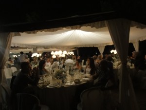 Last night invited to the break up dinner of Fonderia del Chairo. What an experience the front courtyard transformed into a magical space, candles soft live music Artists and all sorts of interesting people including artigiani, politicians and lawyers mingling and enjoying the elegance of the occasion. Waiters dressed in white jackets constantly moving about and serving great wines and apertivi. A really spectacular buffet greeted us as we came in. This weekend begins the mass exodus by Italians for the beach its “Ferie Augusto” the sumner holidays.